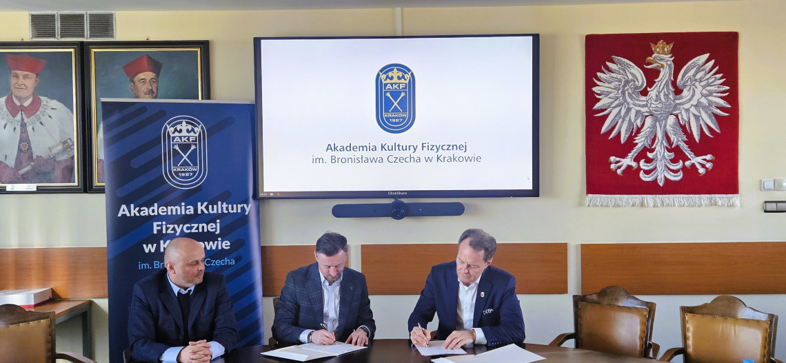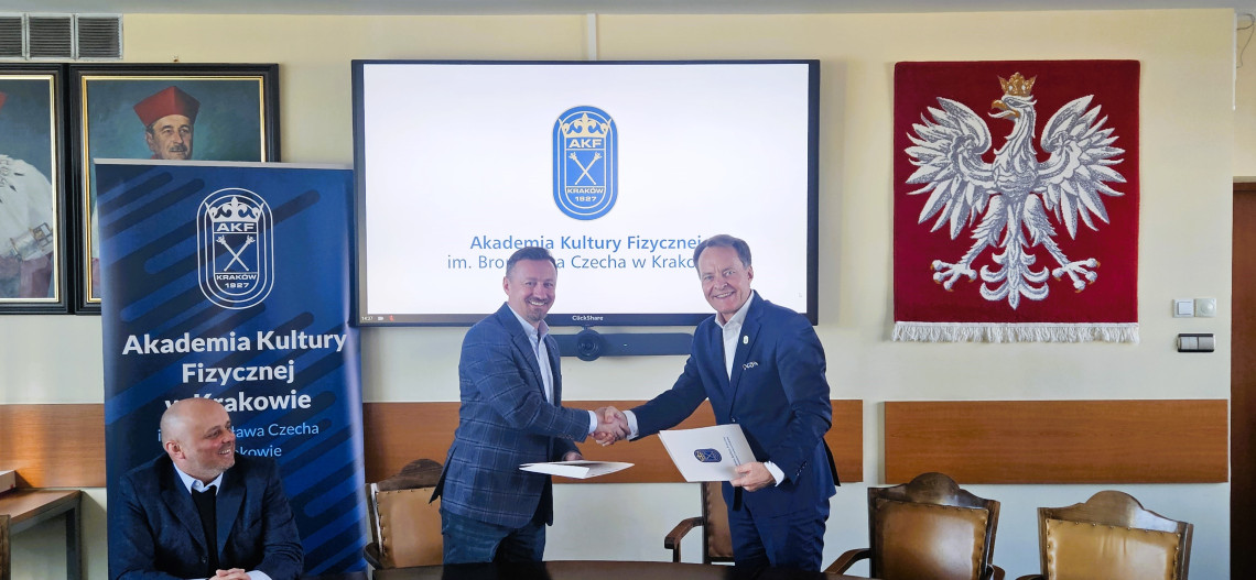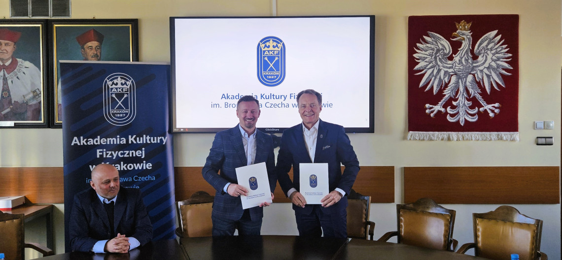 Porozumienie podpisał JM Rektor AKF prof. dr hab. Andrzej Klimek oraz Prezes PZN mgr Adam Małysz wraz z Sekretarzem Generalnym dr Tomaszem Grzywaczem.