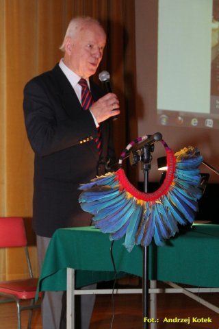 Spotkanie w Auli rozpoczął trzyczęściowy wykład prof. Zdzisława Jana Ryna. Pierwsza część dotyczyła teoretycznej, naukowej analizy zagadnień medycyny indiańskiej. W części drugiej Profesor opowiedział o swoich spotkaniach z praktykami uzdrowicieli indiańskich, bogato ilustrując to 180 fotografiami. Część trzecia to osobiste rozmowy z profesorem Rynem w pomieszczeniach bibliotecznych, w których przedstawiono eksponaty, stanowiące własność Profesora, zebrane w trakcie kolejnych ekspedycji po Ameryce Południowej, służące szamanom do praktyk medycznych.