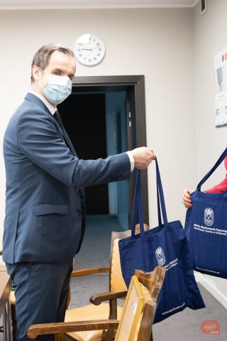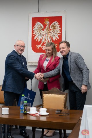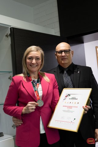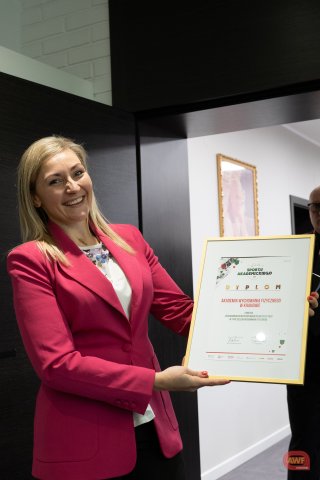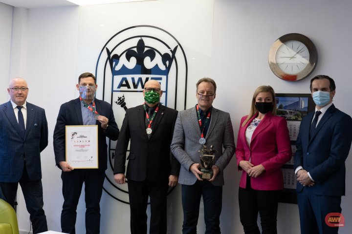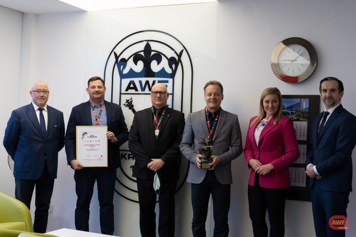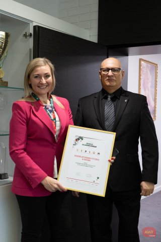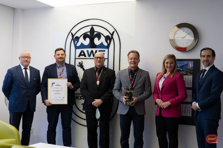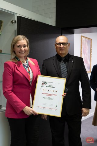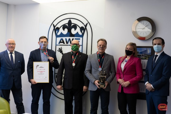 Wręczenie statuetki na ręce Władz Uczelni za AMP