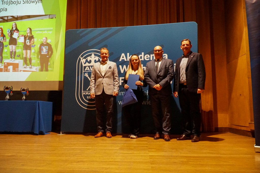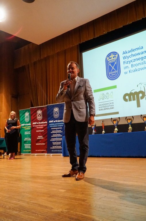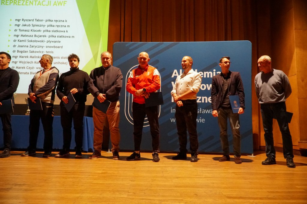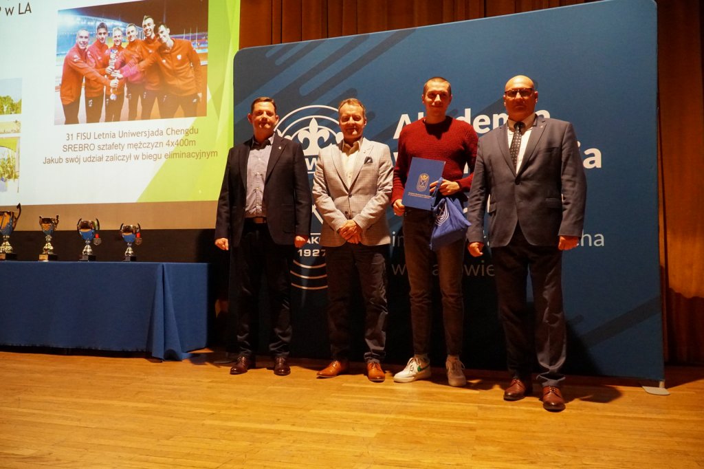 Podczas uroczystości Rektorzy wręczyli listy gratulacyjne i drobne upominki zawodnikom, którzy z sukcesami reprezentowali Uczelnię w Akademickich Mistrzostwach Polski. Osiągnięcia sportowe studentów przedstawiła mgr Kinga Tabor - Koordynator ds. Sportu Akademickiego.