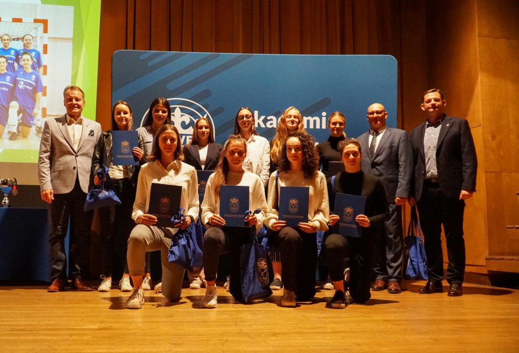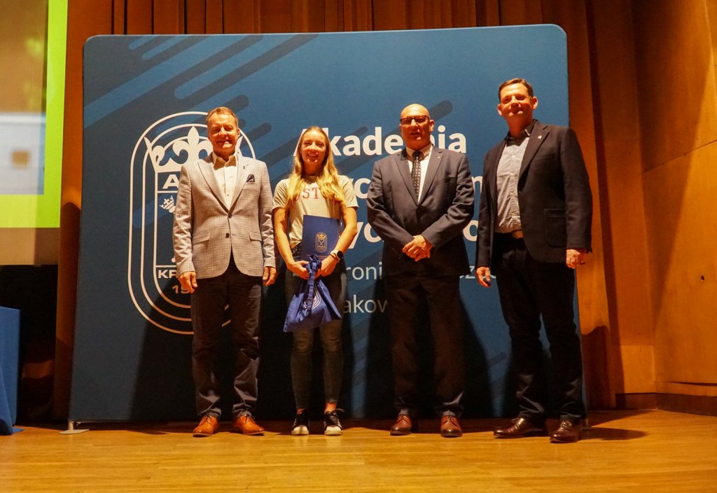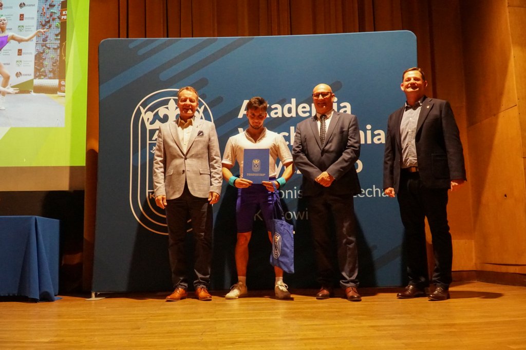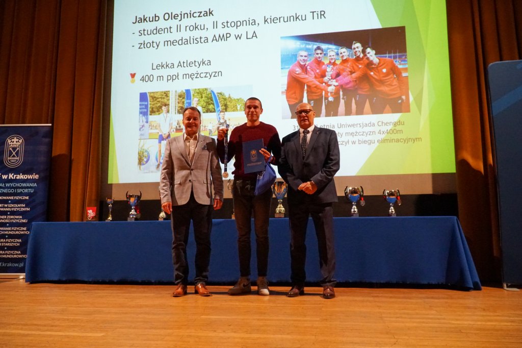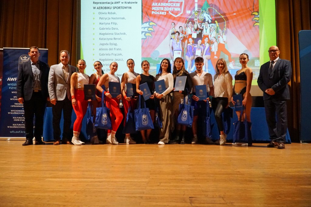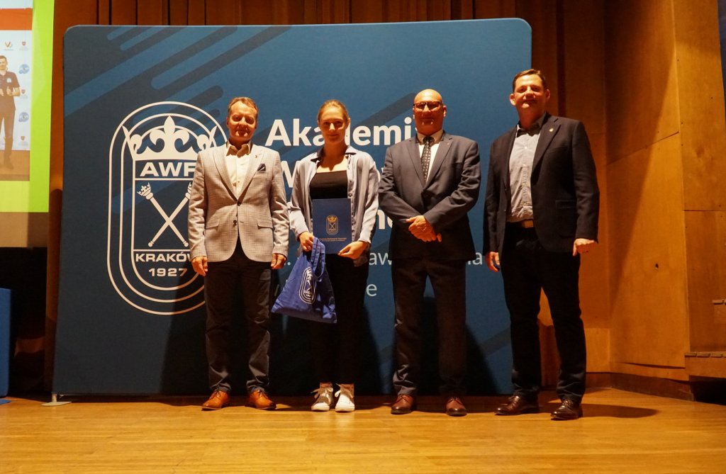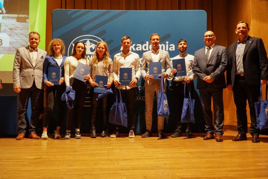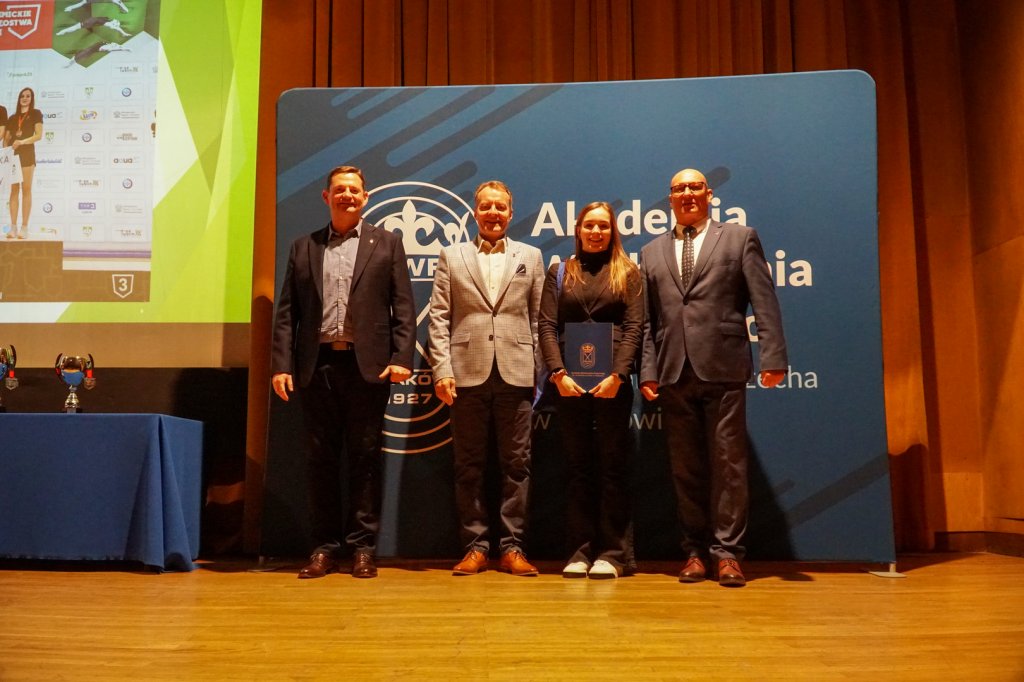 Podczas uroczystości Rektorzy wręczyli listy gratulacyjne i drobne upominki zawodnikom, którzy z sukcesami reprezentowali Uczelnię w Akademickich Mistrzostwach Polski. Osiągnięcia sportowe studentów przedstawiła mgr Kinga Tabor - Koordynator ds. Sportu Akademickiego.