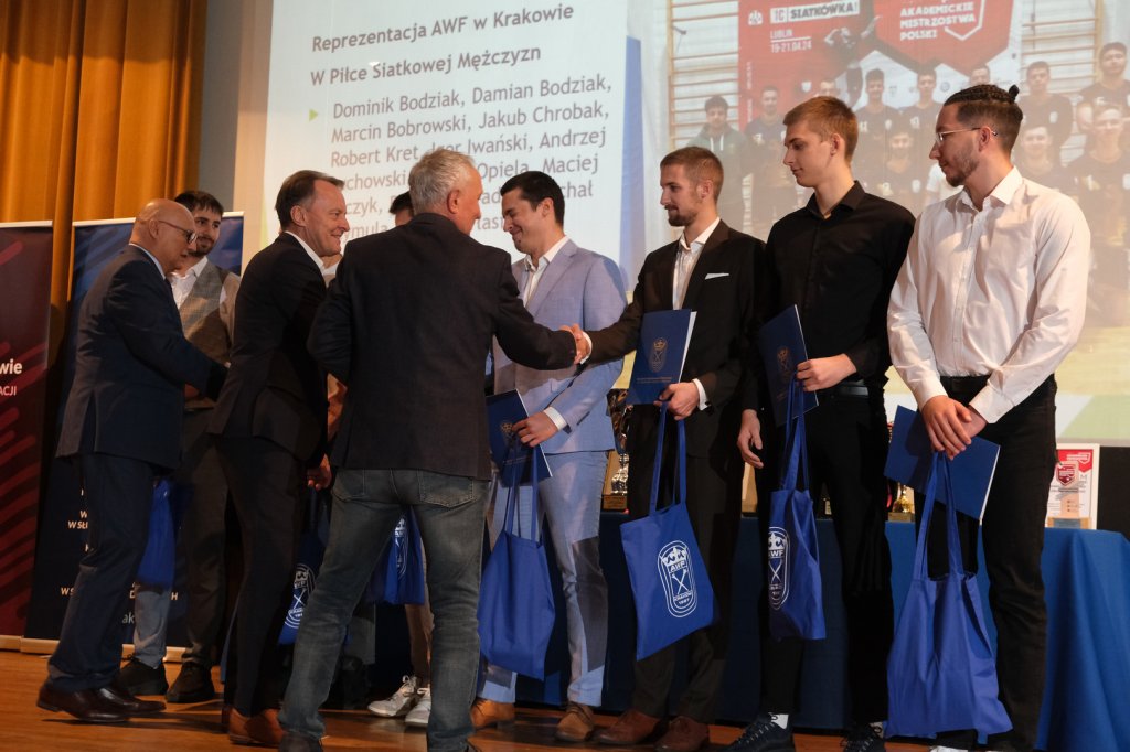 JM Rektor prof. Andrzej Klimek, Prorektor ds. Studenckich prof. Michał Spieszny oraz Dziekan Wydziału WFiS prof. Wiesław Chwała mieli przyjemność wręczyć listy gratulacyjne i drobne upominki dla ponad 100 medalistów AMP w roku akademickim 2023/2024.
