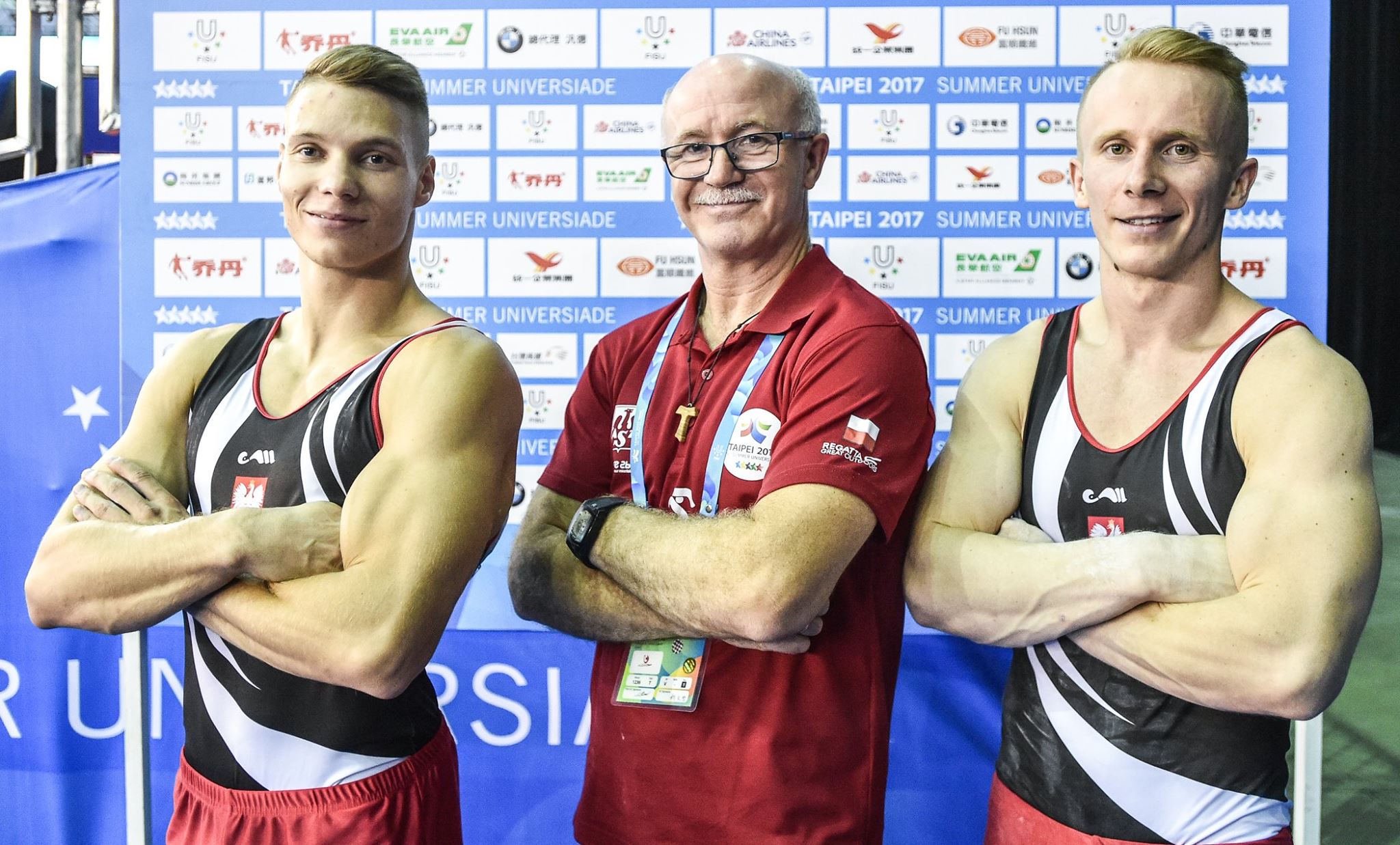 W gimnastyce sportowej zaprezentował się Piotr Kiełbik- student AWF w Krakowie, który rozpoczął występ biało-czerwonych na 29. Letniej Uniwersjadzie w Tajpej. Polscy gimnastycy wykonywali trudne układy, które były surowo oceniane. Po pierwszym dniu eliminacji wysoko sklasyfikowany został student krakowskiej AWF- Piotr Kiełbik, który w skoku zajął ósme miejsce. W finale Piotrek pokazał na co go stać i wywalczył 5 miejsce! Nasz student pod okiem swojego trenera, a naszego wykładowcy dr Leona Biskupa w wieloboju uplasował się na 7. miejscu.