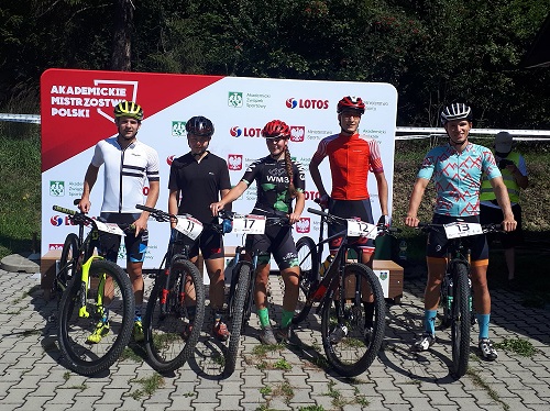 Stanisław Nowak: "AMP w tym roku były pod wielkim znakiem zapytania. Na szczęście dzięki ludziom pasji tegoroczne mistrzostwa się odbyły. Impreza zaczęła się w piątek 28 sierpnia. Po zgłoszeniu ekipy AWF w Krakowie wykonaliśmy zapoznanie z trasą i optymistycznie wyczekaliśmy startów. Runda wymagająca fizycznie poprzez liczne strome podjazdy i szybkie kręte zjazdy wymagała ciągłego skupienia. Sobota to czasówka na dystansie jednej rundy. Czułem się w porządku i chodź było kilku poważnych rywali to liczyłem na pozycje medalowe. Moją strategią było nie forsować tempa i równą mocną jazdą osiągnąć jak najlepszy czas. Udało się i po przejeździe wszystkich zawodników mogłem celebrować miano najszybszego studenta kraju w czasówce MTB. Niedziela przywitała nas jeszcze większym upałem niż poprzedni dzień i przewidziany był dla nas dystans 8 okrążeń. Od początku rywalizacji jechałem z czołówką jednak tempo lidera było mordercze i aby zachować siły na końcówkę wyścigu zostałem w tyle. Mimo wszystko po 1h46min wykończony na mecie cieszyłem się brązowym medalem i puszką lodowatej Coli. Jestem bardzo zadowolony z tak owocnego weekendu zarówno dla mnie indywidualnie jak i dla AWF w Krakowie gdzie w klasyfikacji drużynowej mężczyzn pomimo defektu jednego z zawodników zgarnia srebro. Cieszy również dobry wynik dziewczyn. Wielkie podziękowania dla niezawodnej Koordynator ds. Sportu Akademickiego - Kingi Tabor za trzymanie ręki na pulsie w sferze zapisów, logistyki każdego detalu, zakwaterowania i wsparcia Ekipy!”