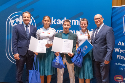 Podczas uroczystości Rektory wręczyli listy gratulacyjne zawodnikom, którzy z sukcesami reprezentowali Uczelnię w minionym sezonie, zdobywając medale i puchary w rywalizacji Akademickich Mistrzostw Polski. Osiągnięcia sportowe studentów przedstawiła mgr Kinga Tabor- Koordynator ds. Sportu Akademickiego.