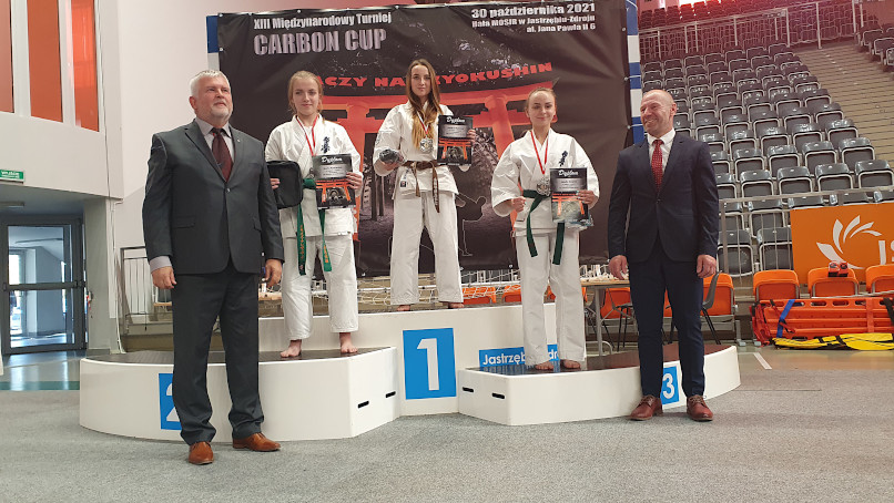 30.11.2021 roku zorganizowany został prestiżowy Międzynarodowy Turniej Karate Kyokushin w Jastrzębiu Zdroju "Carbon Cup 2021" Liczba zawodników przekraczała 300 osób. Wystartowałam w bardzo dobrze obsadzonej kategorii kata juniorki&seniorki. Objęłam prowadzenie już w eliminacjach, gdzie suma moich not była znacznie wyższa od moich przeciwniczek. Nie zmieniło się to również w turze finałowej. Zajęłam 1 miejsce ze znaczącą przewagą. Jest to moje trzecie z rzędu zwycięstwo na tym turnieju.