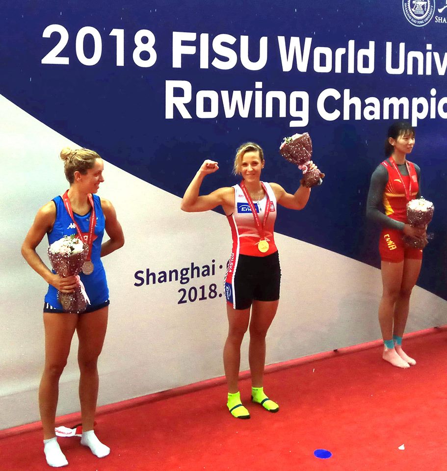 Znakomite wieści dotarły do nas z Szanghaju, gdzie rozgrywane były Akademickie Mistrzostwa Świata w wioślarstwie, które odbyły się w dniach 10-12.08.2018 r. Nasza studentka Katarzyna Wełna startowała w konkurencji jedynka wagi lekkiej kobiet i w pięknym stylu wygrała te zawody! Zdobyła złoty medal Akademickich Mistrzostw Świata jednocześnie uzyskując bardzo dobry czas 7:42,33 w bardzo trudnych warunkach atmosferycznych.