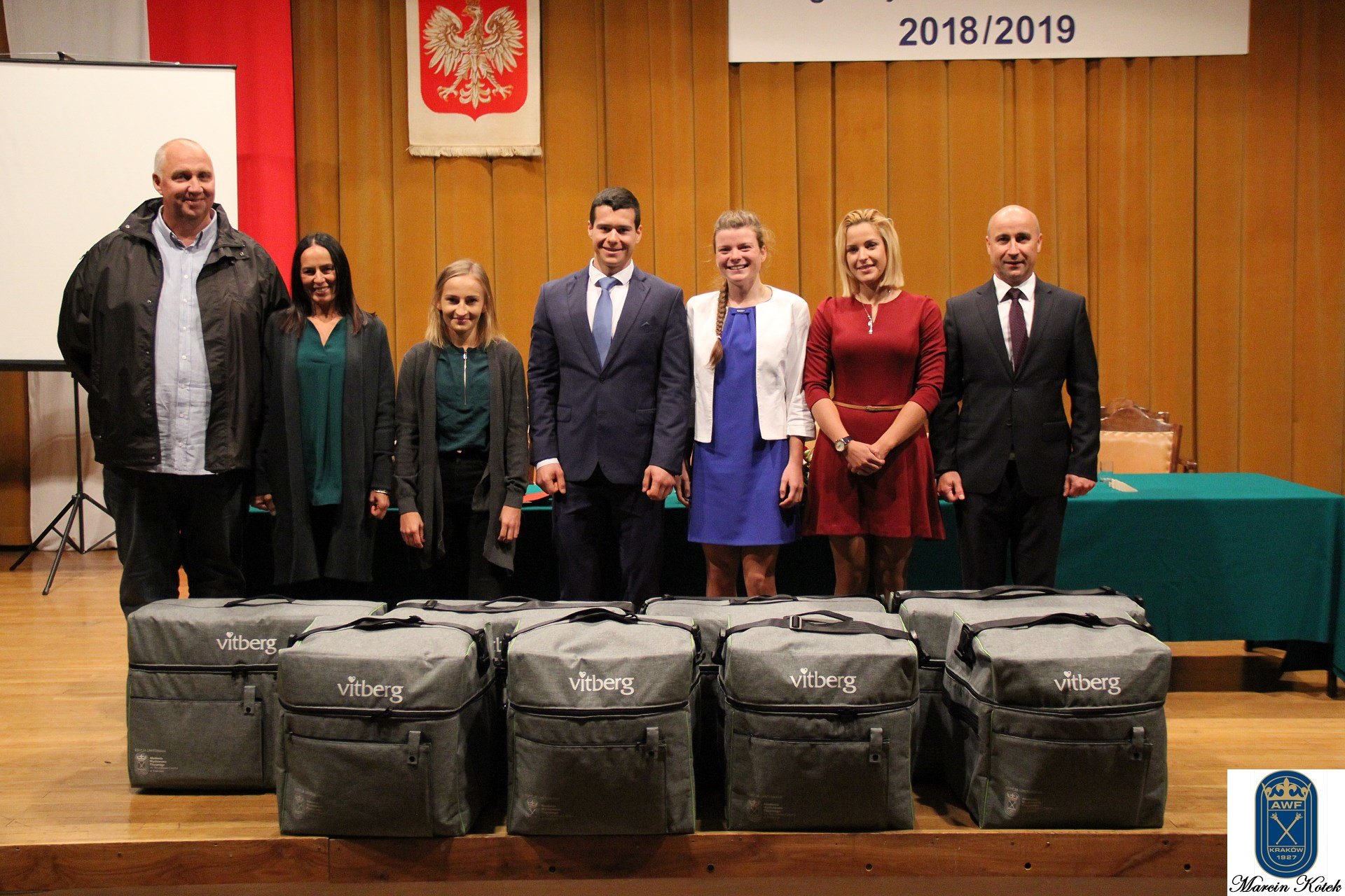 Podczas uroczystej Inauguracji Roku Akademickiego 2018/2019 AWF w Krakowie najlepsi sportowcy naszej Uczelni zostali wyróżnieni przez JM Rektora i otrzymali z rąk Pana Jacka Sikory- założyciela firmy Vitberg profesjonalny sprzęt, który posiada system wibracyjny.