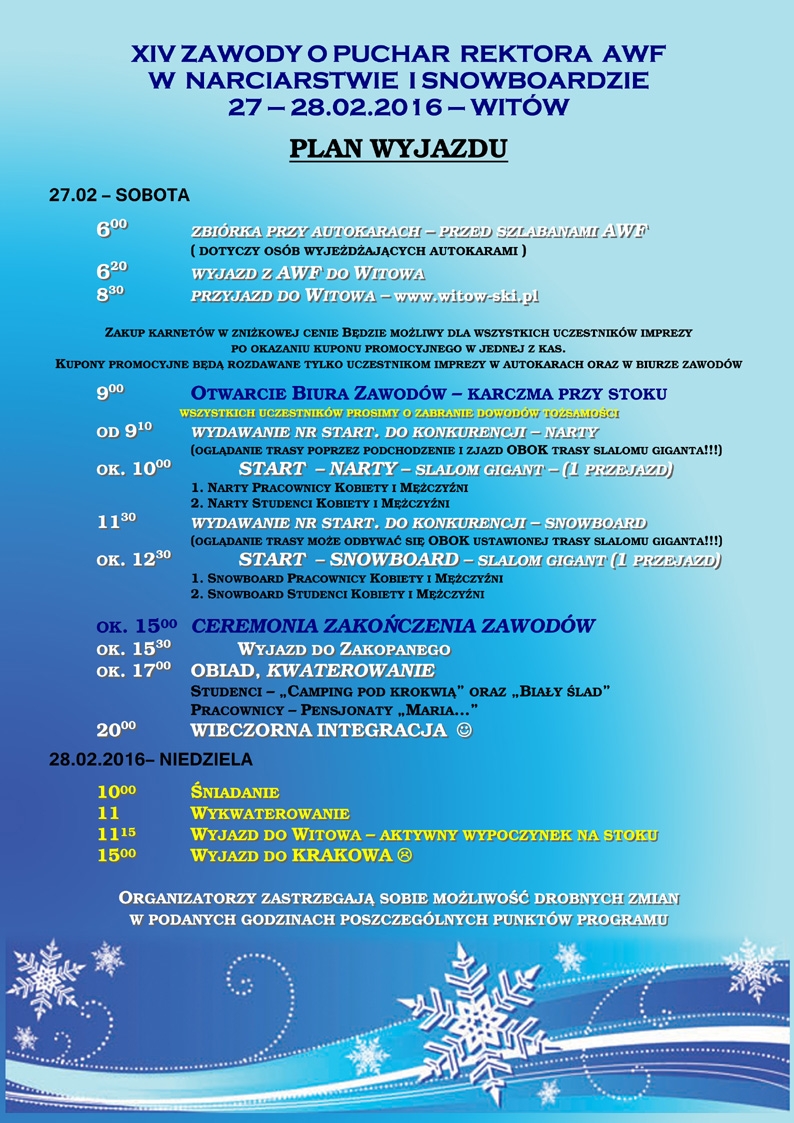 Już w najbliższy weekend w Witowe i Zakopanem odbędzie się największa zimowa impreza uczelniana - Puchar Rektora AWF w Krakowie w narciarstwie alpejskim i snowboardzie.